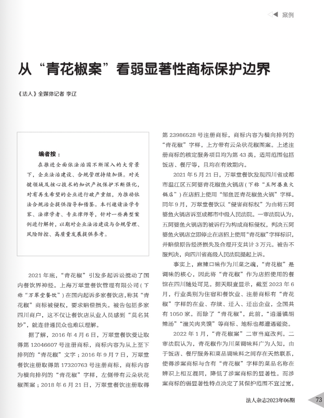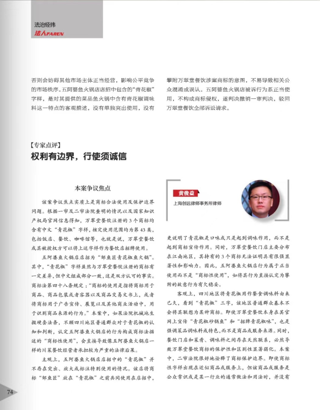 梅州辉知简讯 | 辉知队黄俊益律师应“法治日报”旗下杂志邀请,就“青花椒”案发表专家点评