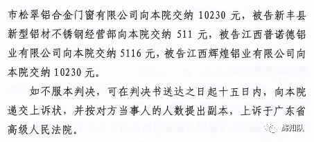 梅州凤铝系列维权案:诉辉煌公司等四被告,法院判赔250余万