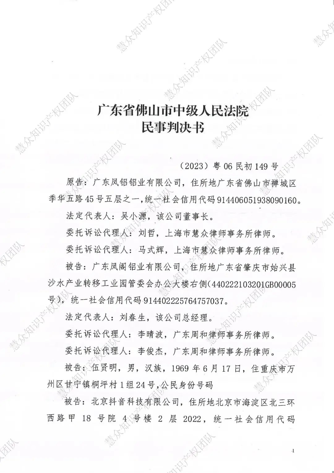 梅州判赔800万!辉知队代理“凤铝”商标维权案胜诉